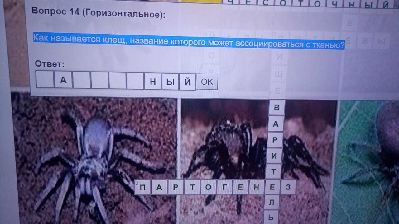 Есть такой клещ как паутинный. Но он вряд ли ассоциируется с тканью, но подходит в кроссворд
