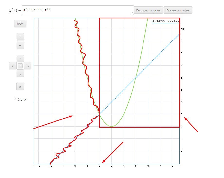 Вот построеный график, тебе нужно построить и обвести от x>=2!