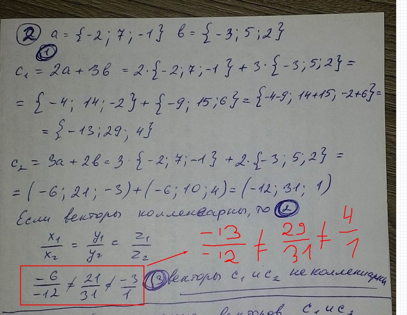 Условие коллинеарности (запись слева) с1 и с2 не выполняется (-13)/(-12)≠29/31≠4/1