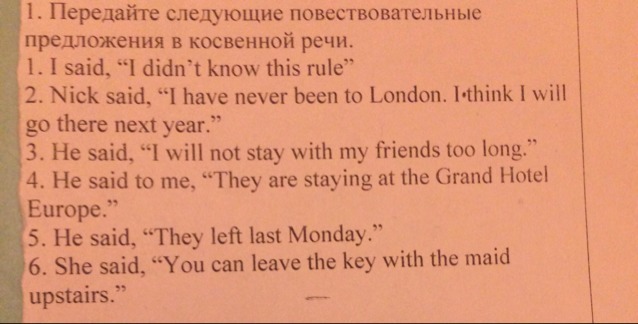 5.He said that they had left last Monday.