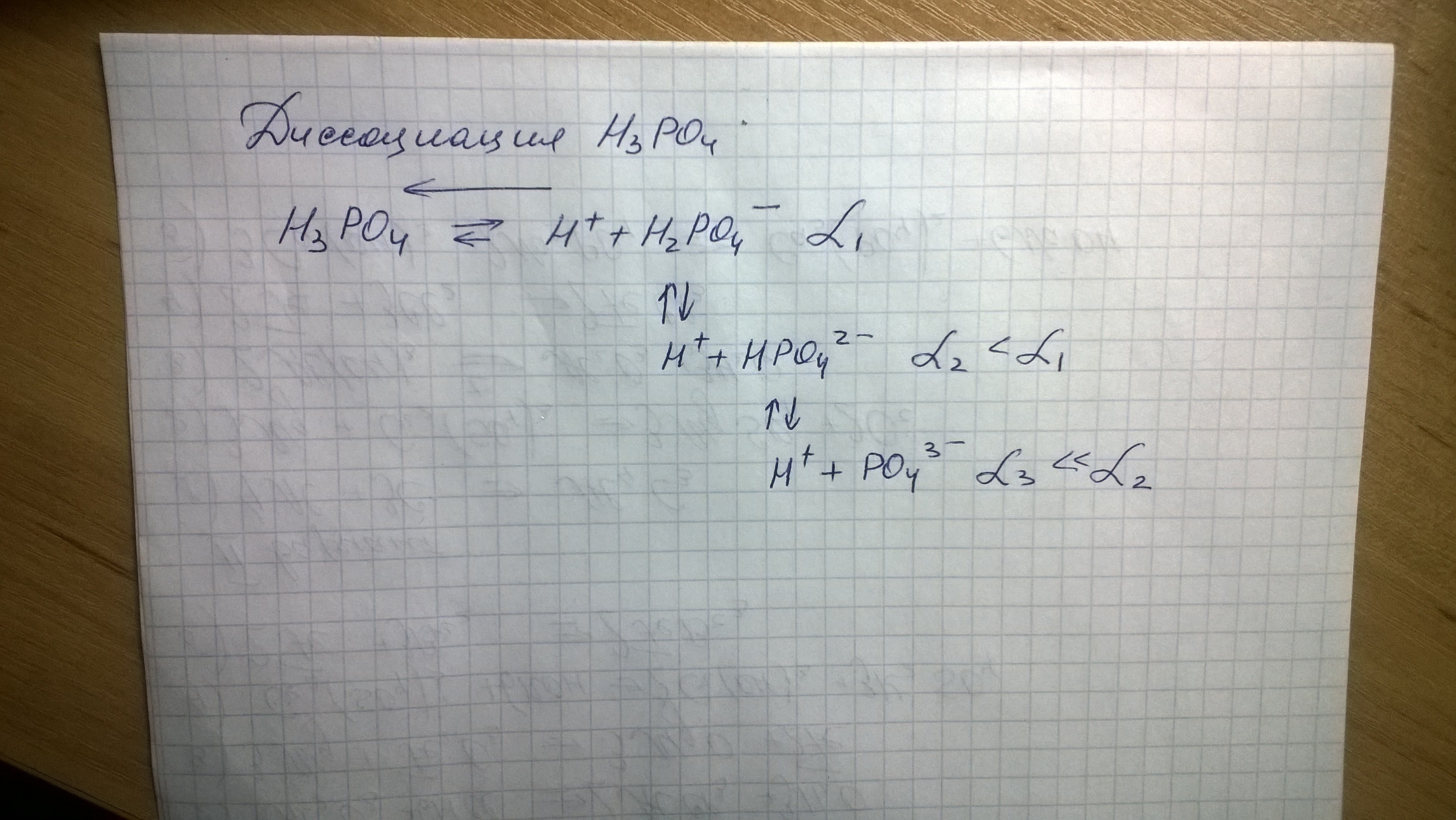 Т.к. ортофосфорная кислота является кислотой средней силы, то диссоциация идет ступенчато (фото в прикрепленном файле)