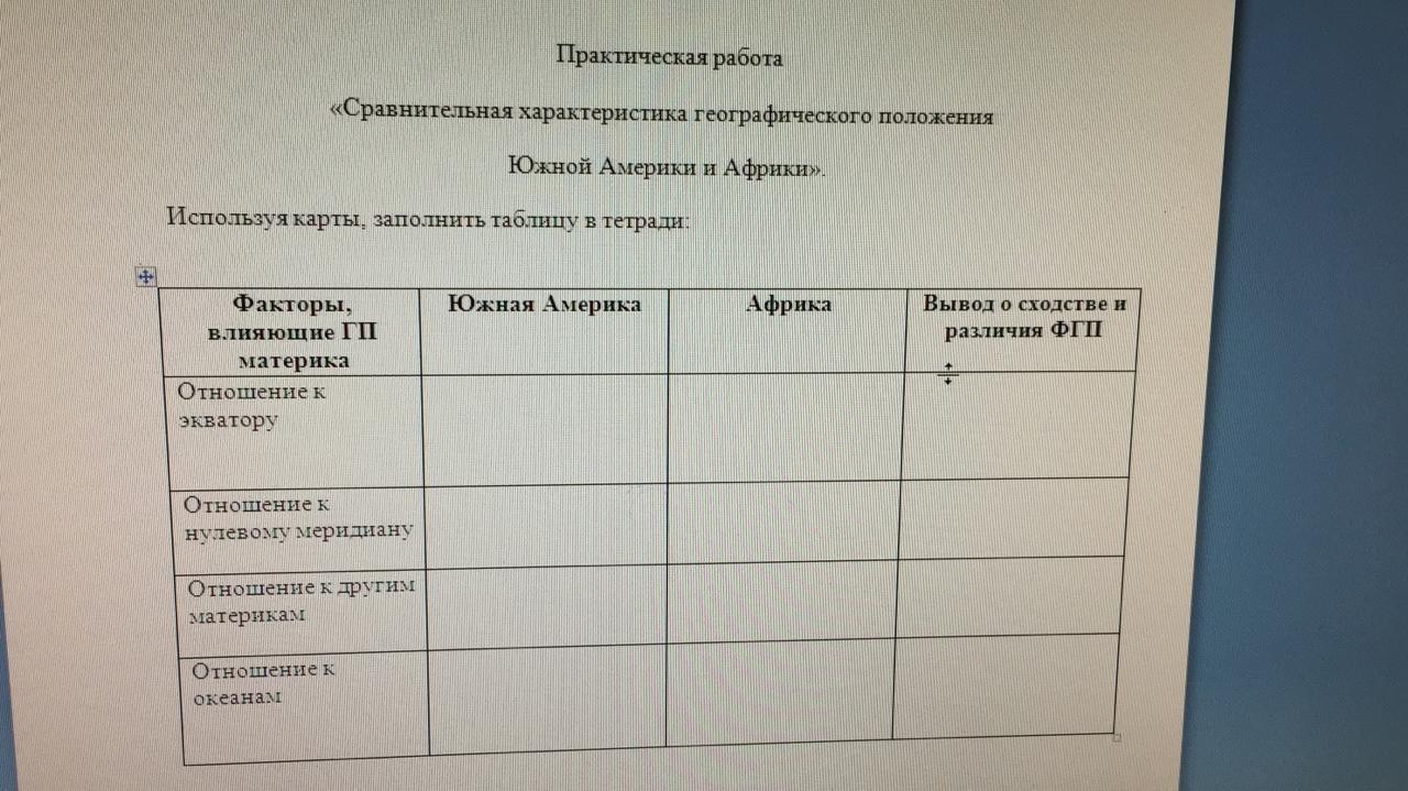 1-Южная Америка пересекается экватором, большая часть материка расположена в Южном полушарии. Ю. Америка находится в западном полушарии (расположена к западу от нулевого меридиана) Южный тропик пересекает материк почти по середине Полярные круги не пересекают материк2-Африка является самым жарким материком Земли. Это связано с тем, что, располагаясь по обе стороны от экватора, она пересекается им практически посередине. Пересекается как северным так и южныи тропиком. Большей частью расположена на востоке. пересеченна 0 меридианом . Африка занимает площадь 30,3 млн км². Протяженность с севера на юг — 8 тыс. км, с запада на восток в северной части — 7,5 тыс. км. Крайние точки Африки: Северная — мыс Бланко (Бен-Секка, Рас-Энгела, Эль-Абъяд) 37°20′28″ с. ш. 9°44′48″ в. д. Южная — мыс Игольный 34°49′43.39″ ю. ш. 20°00′09.15″ в. д Западная — мыс Альмади 14°44′41″ с. ш. 17°31′13″ з. д. Восточная — мыс Рас-Хафун 10°25′00″ с. ш. 51°16′00″ в. д. Континент располагается в экваториальном, субэкваториальном, тропическом и субтропическом климатических поясах. Африку омывают Атлантический (Средиземное море, Гвинейский залив) и Индийский (Красное море, Аденский залив, Мозамбикский пролив) океаны. Материк имеет центральное положение, через Синайский полуостров соединен с Евразией3-Это части одного проконтинента - Пангея (Африка идеально прикладывается к Южной Америке) ! Сходство: Африка и Юж, Америка лежат в экваториальном, субэкваториальном, тропическом и субтропическом поясах, но в Африке пояса повторяются 2 раза. Различия :географическое положение (Южная Америка омывается Тихим и Атлантическим океанами, а Африка - Атлантическим и Индийским) . Ещё отличие по площади (размеры материков) и конфигурацией, большая разница между экономиками стран !