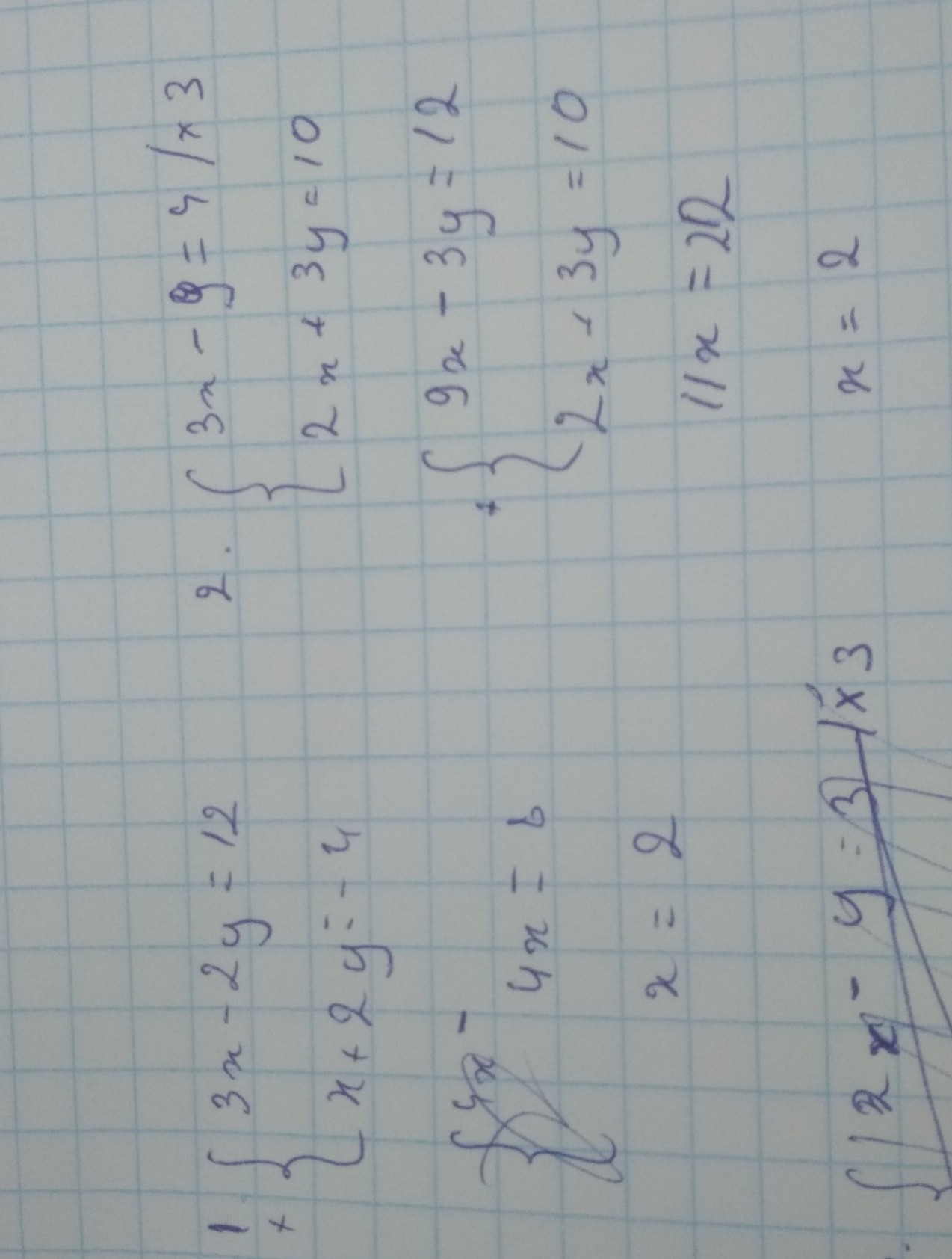 1. {3x-2y=12,