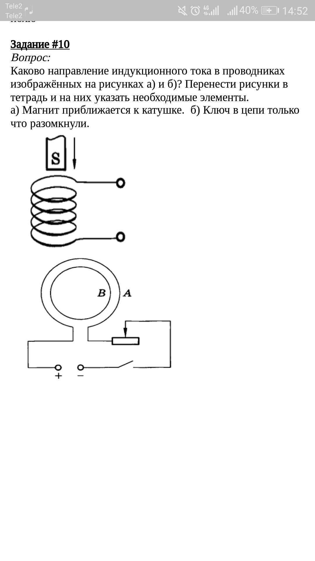 а) Магнит приближается к катушке. б) Ключ в цепи только что разомкнули.