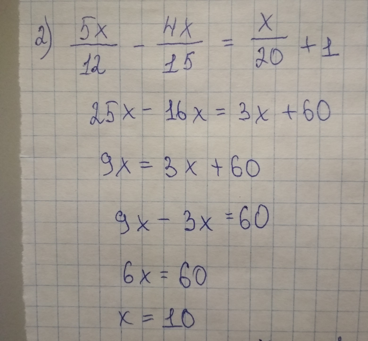 2) 5х/12- 4х/15 = х/20 + 1