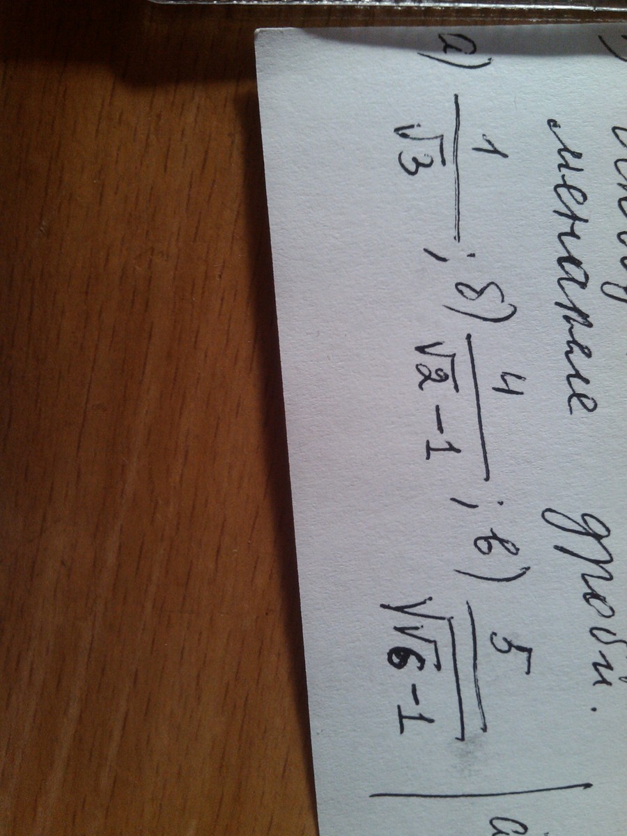 В третьем примере числитель и знаменатель сначала умножаем на корень из (корень из 6 -1) и получаем в числителе 5(корень из (корень из 6 -1)) а в знаменателе корень из 6 -1.