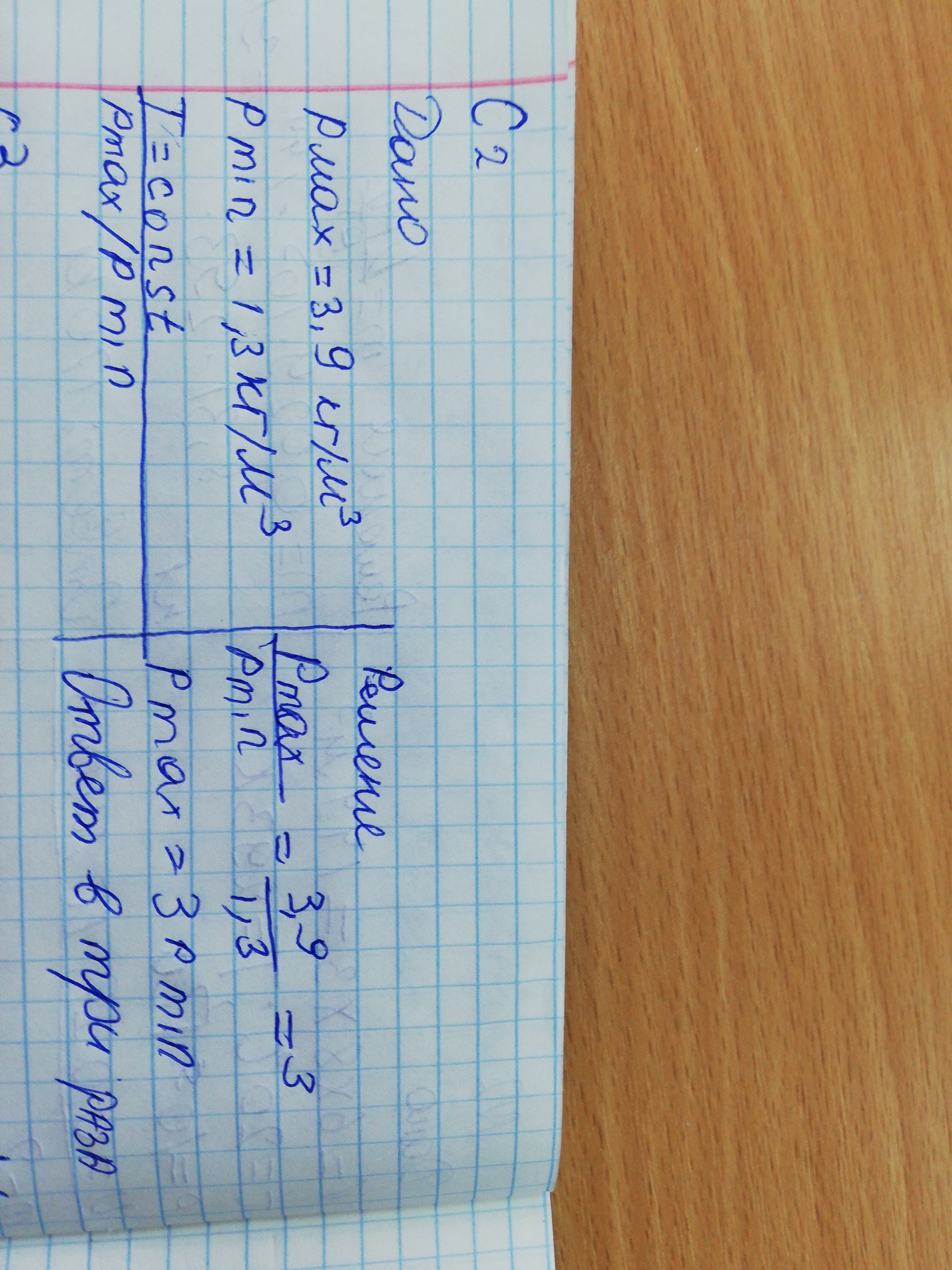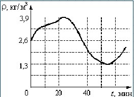 Плотность идеального газа меняется с течением времени так, как показано на рисунке. Температура газа при этом постоянна. Во сколько раз давление газа при максимальной плотности больше, чем при минимальной?
