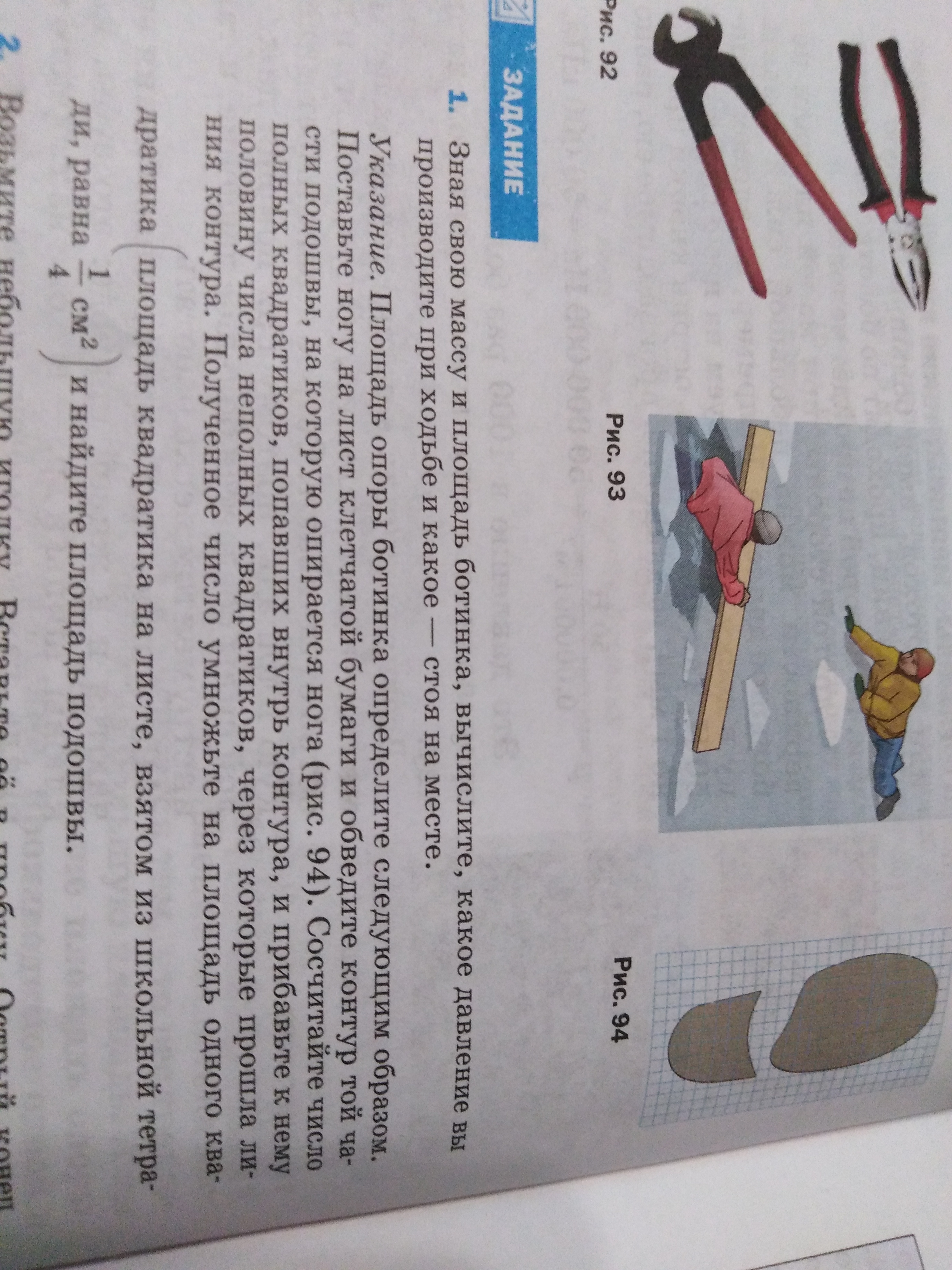 В нашем случае Fд = Fт = mg. Т.к. S =270см² это площадь только одного ботинка, тогда двух ботинков S=540см²=0.054м².