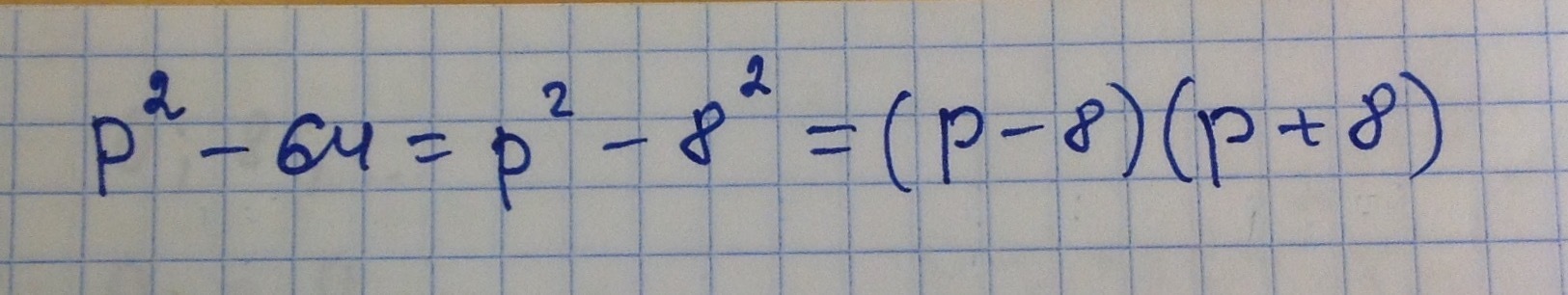 Разность квадратов p2−64 представьте как произведение. Если один множитель равен (p−8) , то чему равен второй множитель?