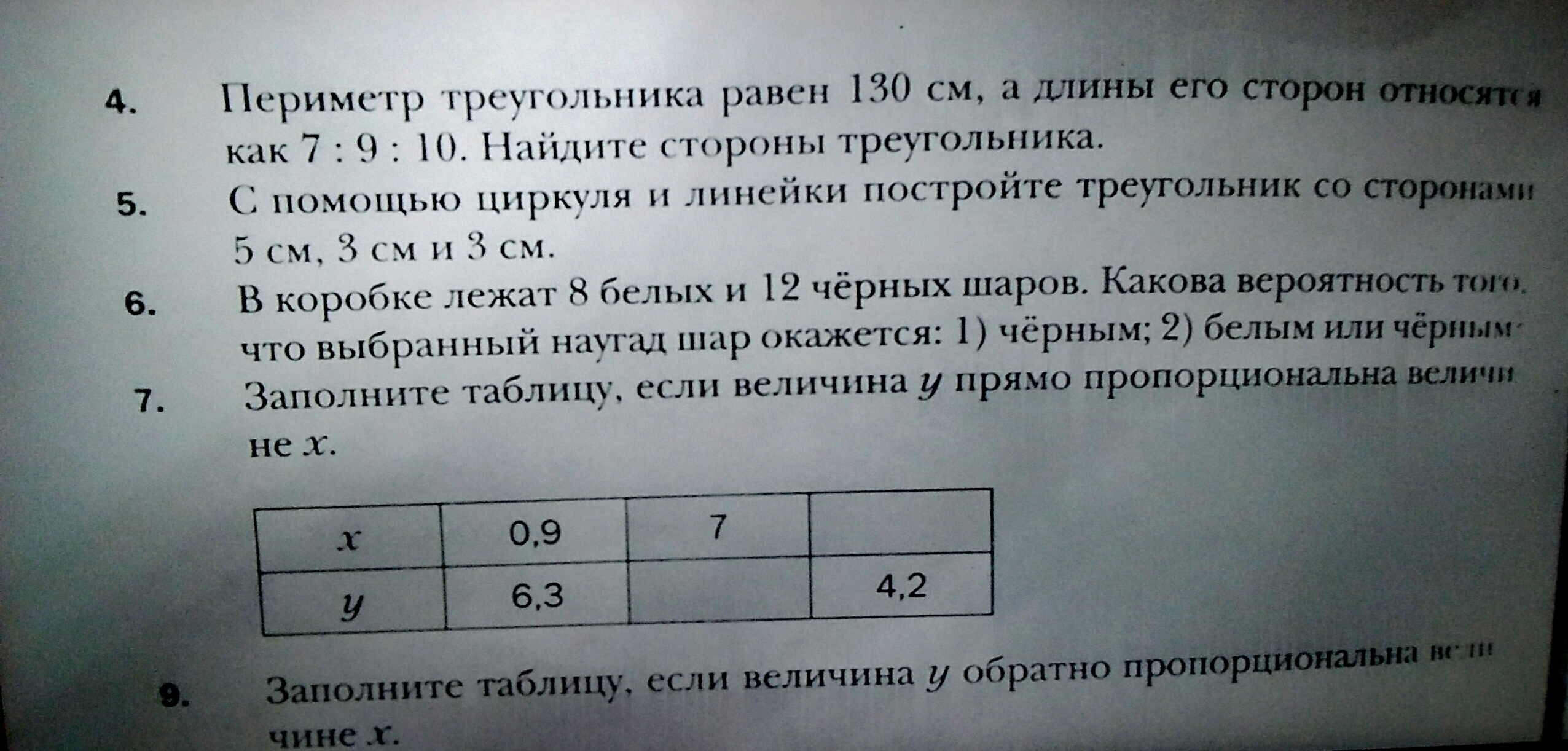 Обратная пропорциональность: y = k x. Ищем k: 6,3 = k 0,9 --> l = 6,3 * 0,9 = 5,67