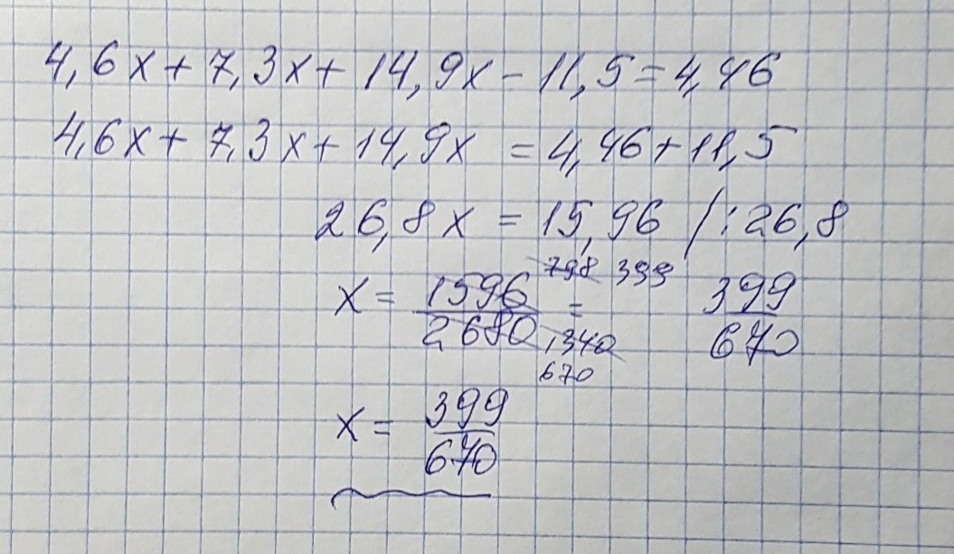 4,6x + 7,3x + 14,9x - 11,5 = 4,46
