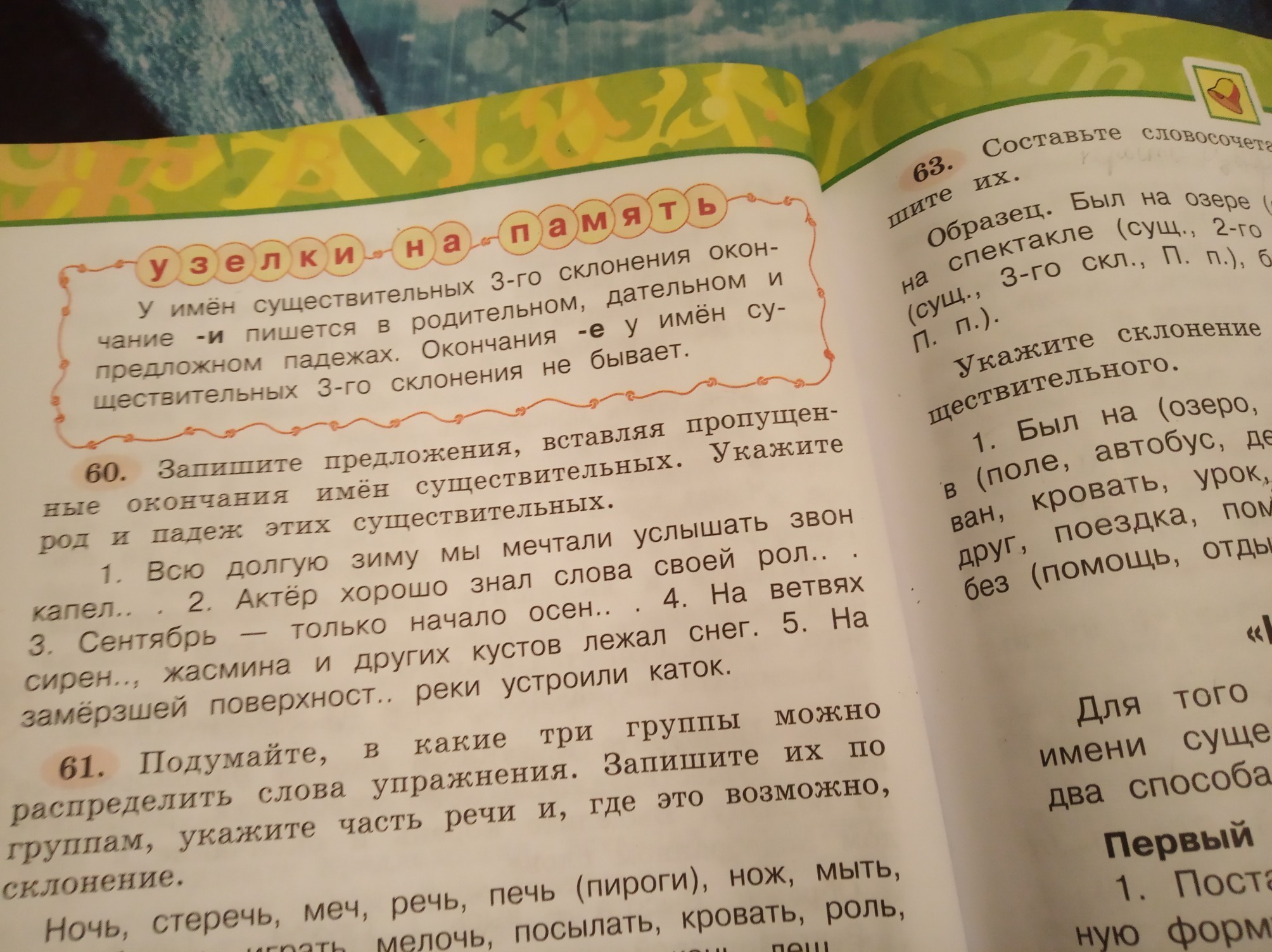 Спишите предложения вставляя пропущенные окончания имён существительных Укажите род и падеж этих существительных
