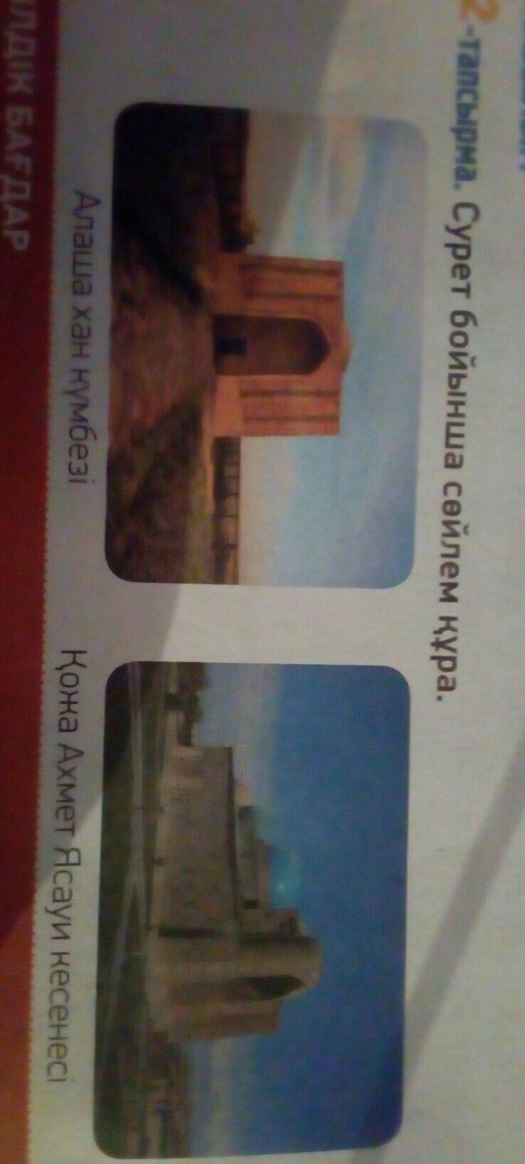 1) Алаша хан күмбезі Ұлытаудағы сәулет өнерінің ескерткіші. 2) Қожа Ахмет Ясауи кесенесі-Түркістан қаласында 14 ғасырдың соңында тұрғызылған архитектуралық ғимарат
