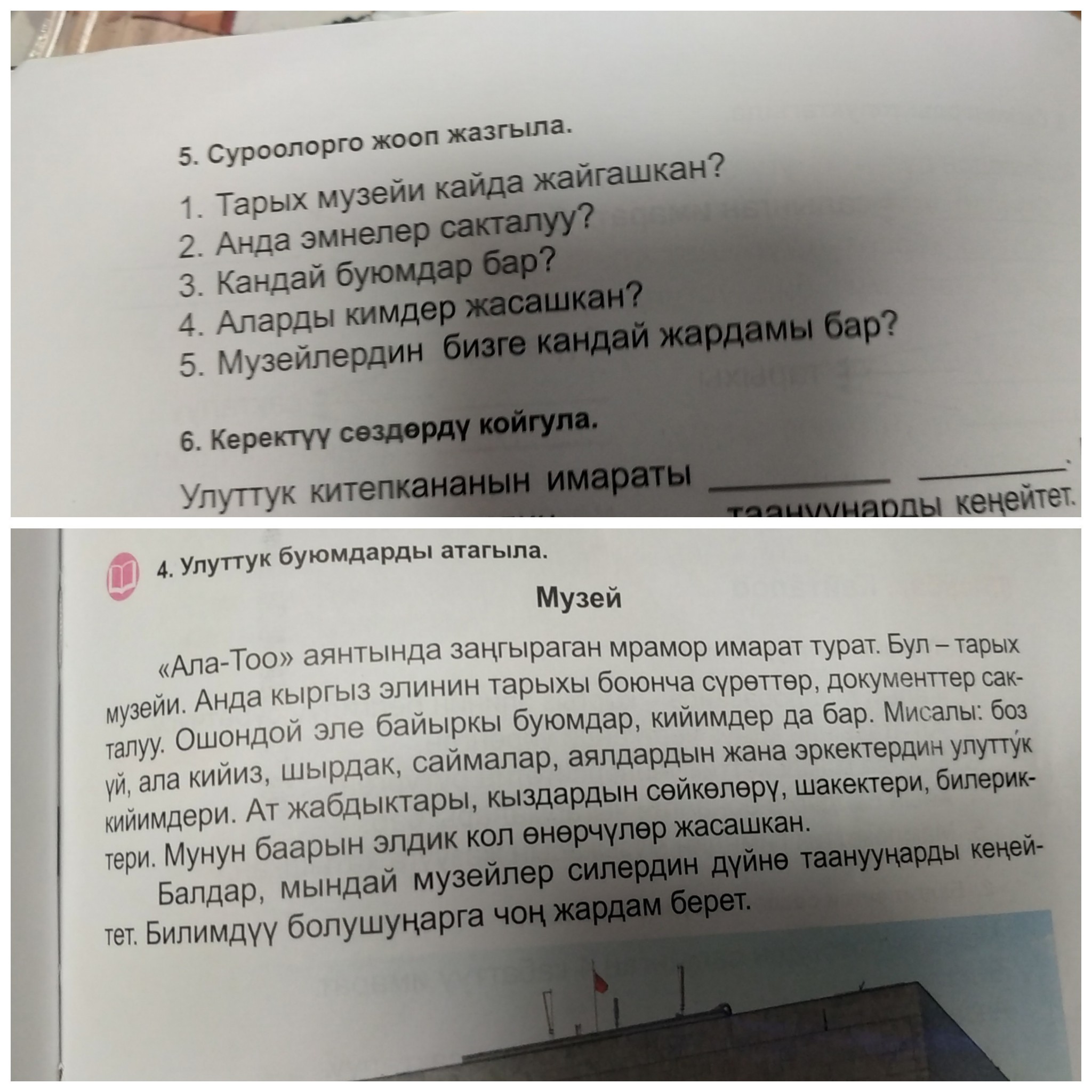 5)Мындай музейлердин биздин дуйно таануубузду кенейтип,билимдуу болушубузга чон жардам тийгизет