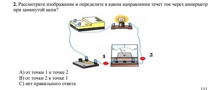 от + к -, следовательно от точки 2 к точке 1 и это B