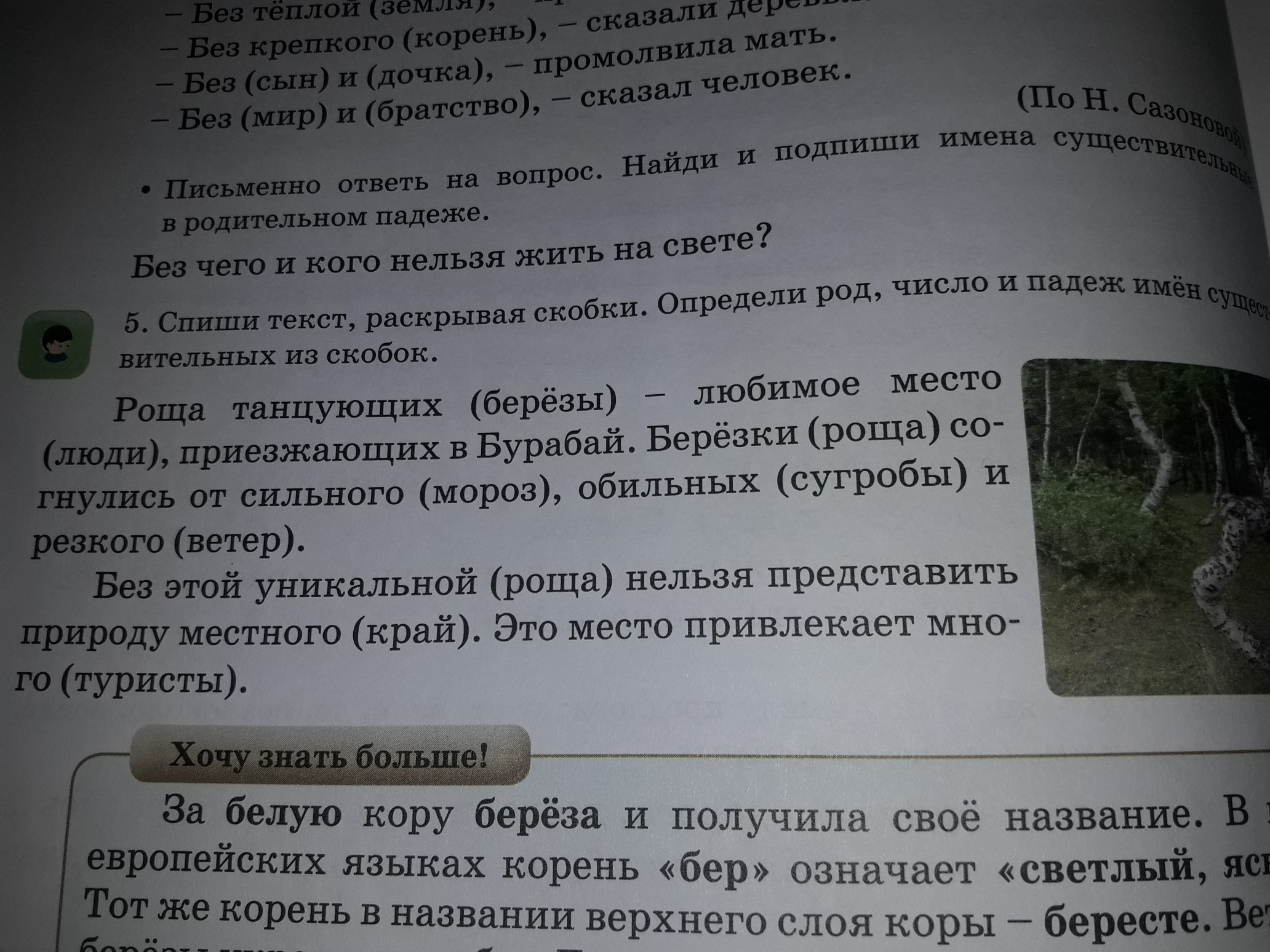 Спиши текст раскрывая скобки Определи род число и падеж имен существительных из скобок упражнения5