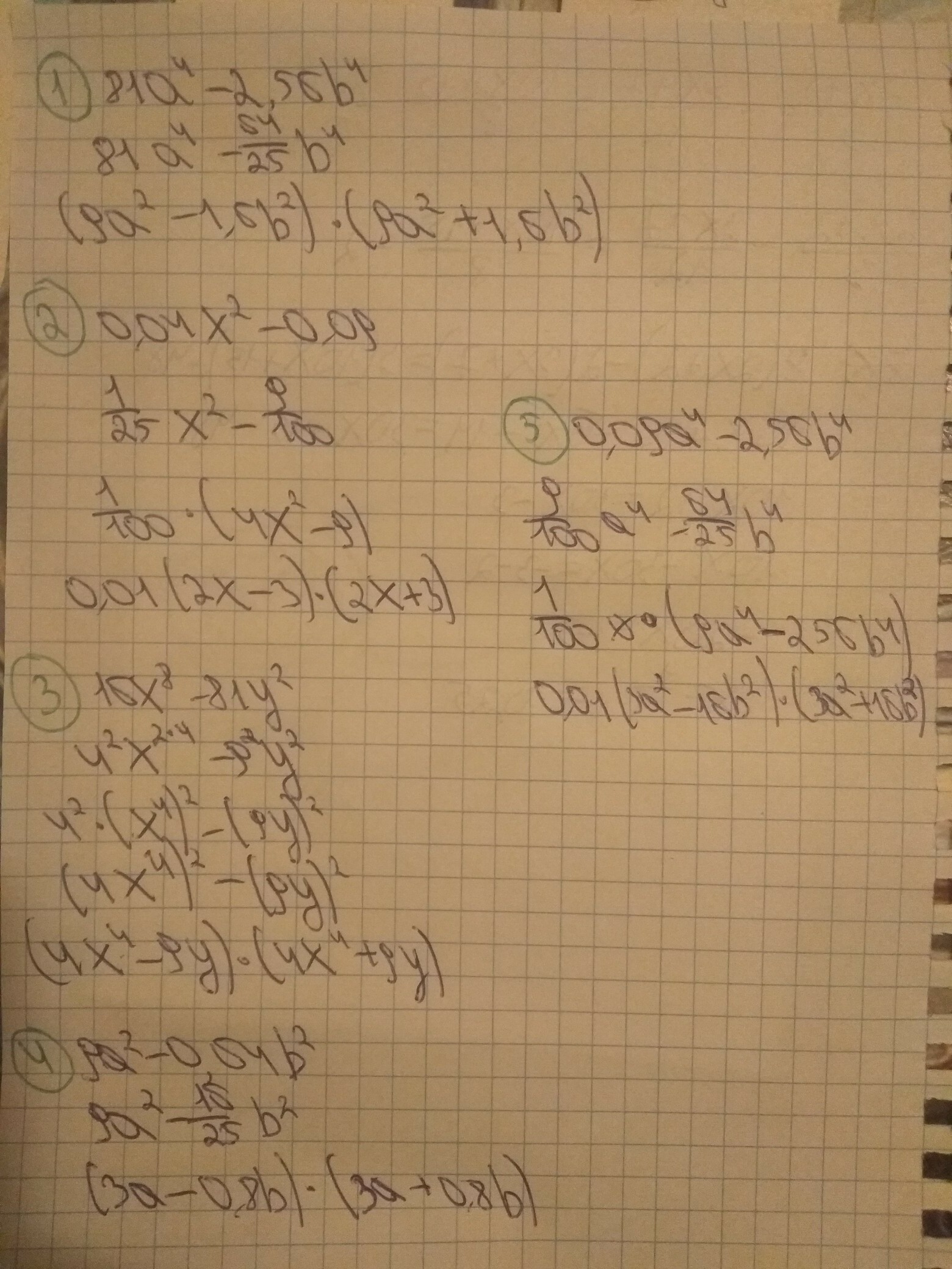 1) 81a^4 − 2,56b^4= (9a²-1,6b²)(9a²+1,6b²)