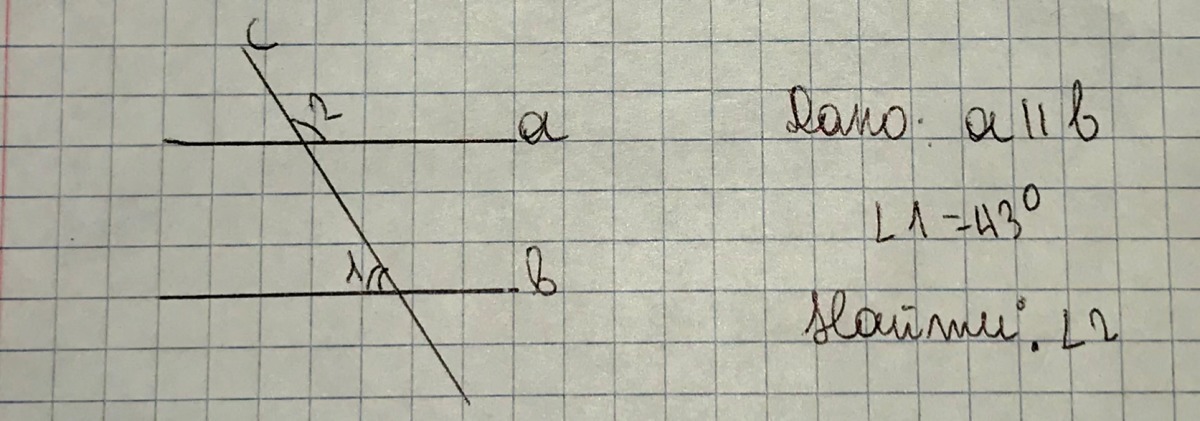 1)Т.К угол 1 43 градус 43, то отсюда следует, что угол 3=137 градусов (смеж)