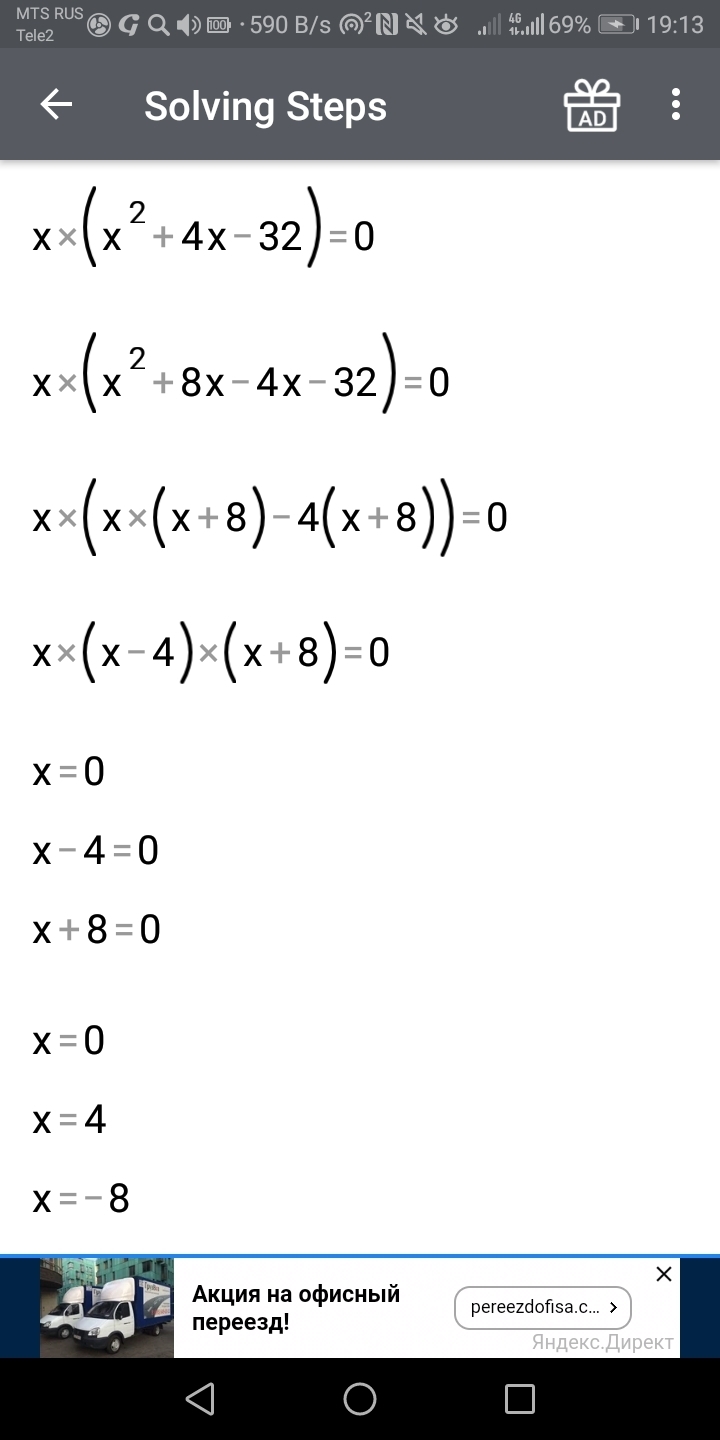 Помогите пожалуйста как решить уравнение с вынесением общего множителя за скобки пожалуйста с полным решением. Х^3+4х^2 -32х=0