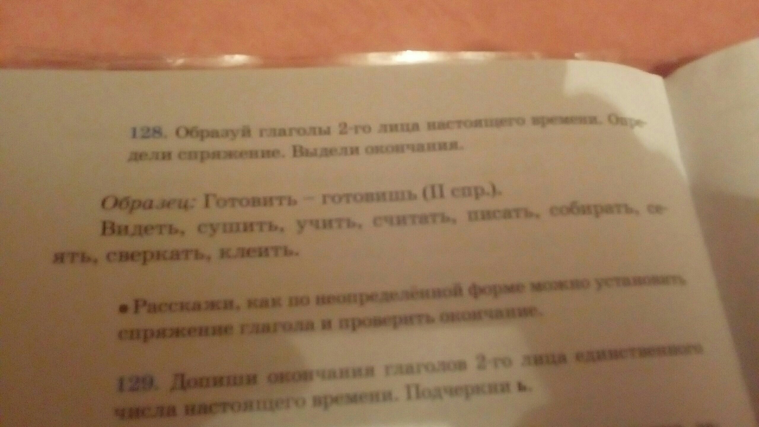 Видеть-видишь, сушить-сушишь, учить-учишь, считать-считаешь, писать-пишешь, собирать-собираешь, сеять-сееш, сверкать-сверкаешь, клеить-клеишь