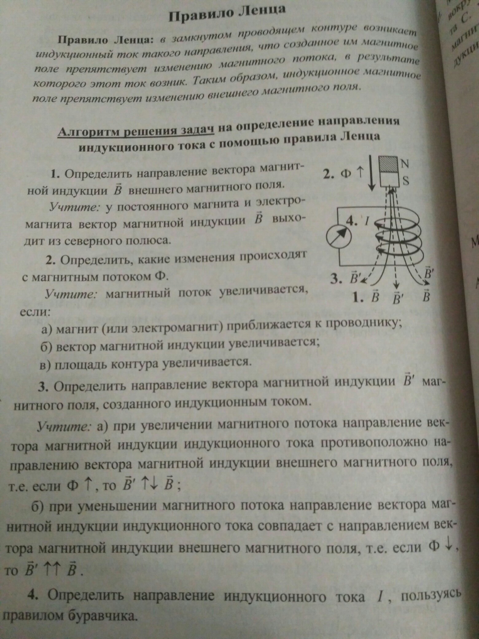 большой палец по направлению магнитной индукции тогда 4 пальца покажут направление инд.тока правило буравчика