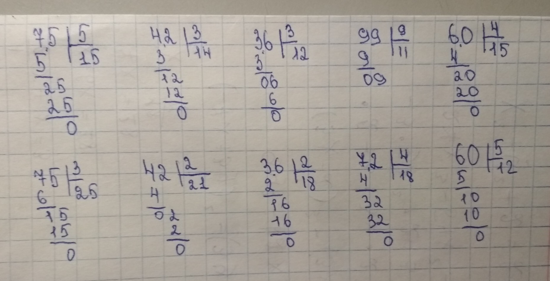 75:3= 42:2= 36:2=18 72:4= 60:5=12
