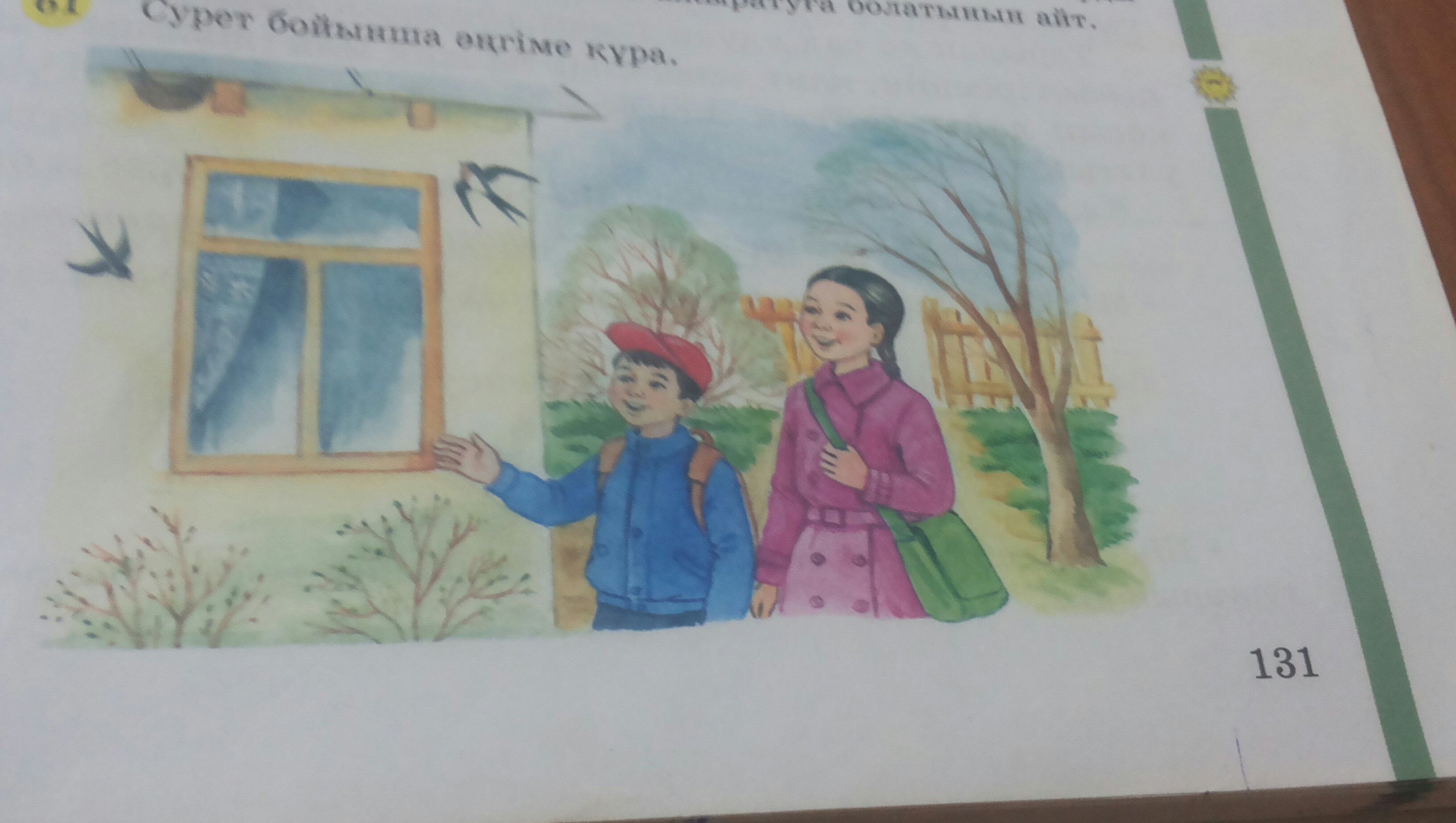 Бұл - Əли ,Əли əпкесімен мектептен келе жатыр. Олар қарлығаштың ұясын көріп қалды .Əли əпкесінен Бұл қандай құс деп сұрады.