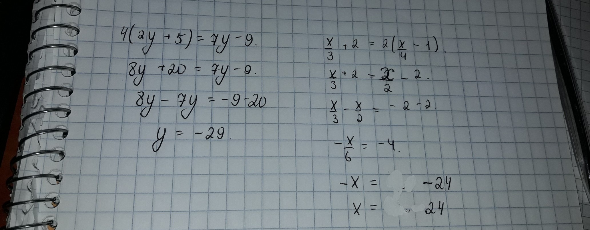 Решить уравнение x/3 + 2 = 2(x/4 - 1)