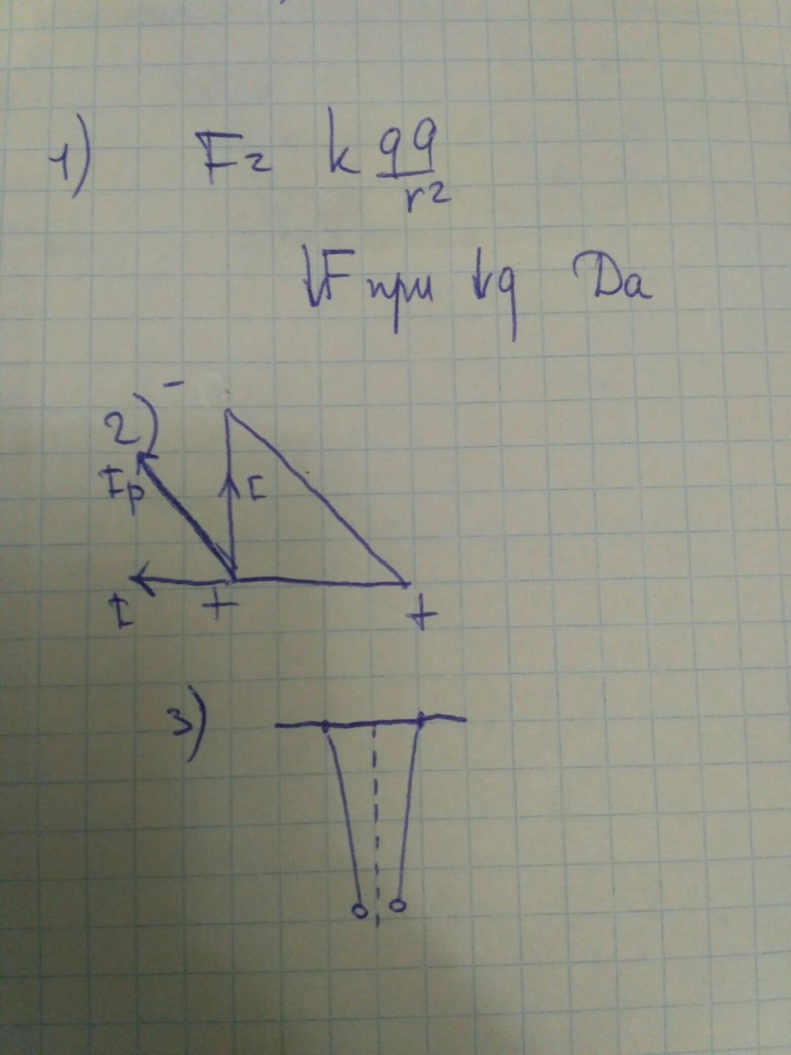 2 одинаковых маленьких заряженных шарика подвешены на тонких электро непроводящих нитях одинаковой длины нити закреплены на одном уровне на небольшом расстоянии друг от друга изобразите расположение шариков если к 1 меньше нуля Q2 больше 0 2 Q1 равно Q2