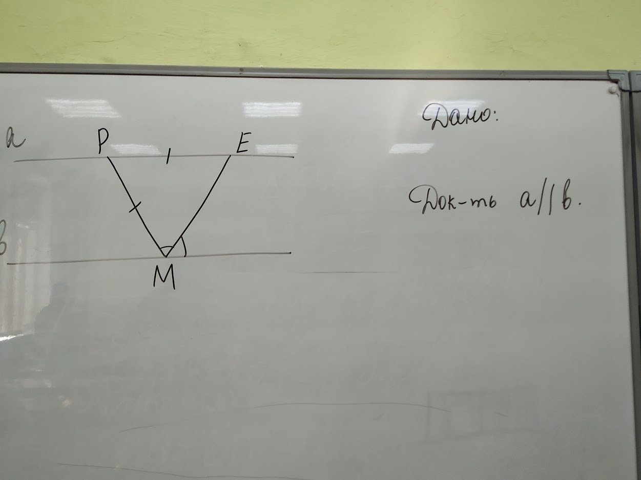 PEM = РМЕ, так как это углы у основания равнобедренного треугольника, и так как PME = EMb (по условию), то PEM = EMb, и так какони внутренние разносторонние - а параллельно b