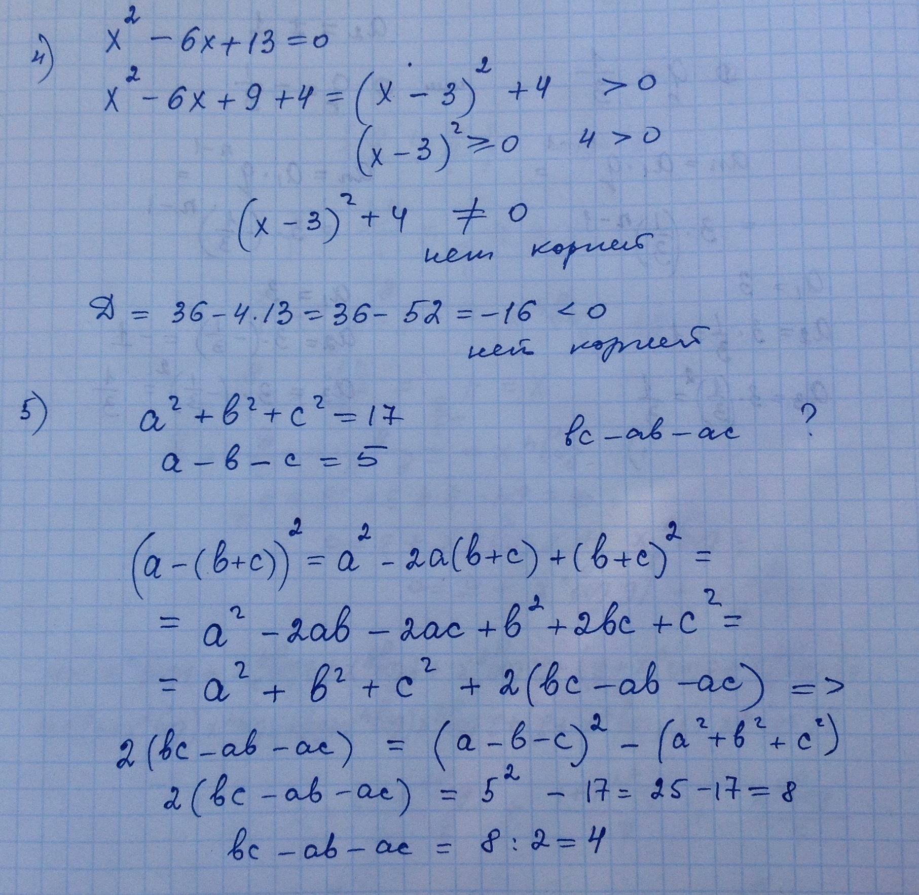 4. Докажите, что уравнение x2 − 6x + 13 = 0 не имеет корней.