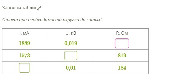Ом. Ответ округли до сотых в случае, если результат вычисления имеет большое количество цифр после запятой!
