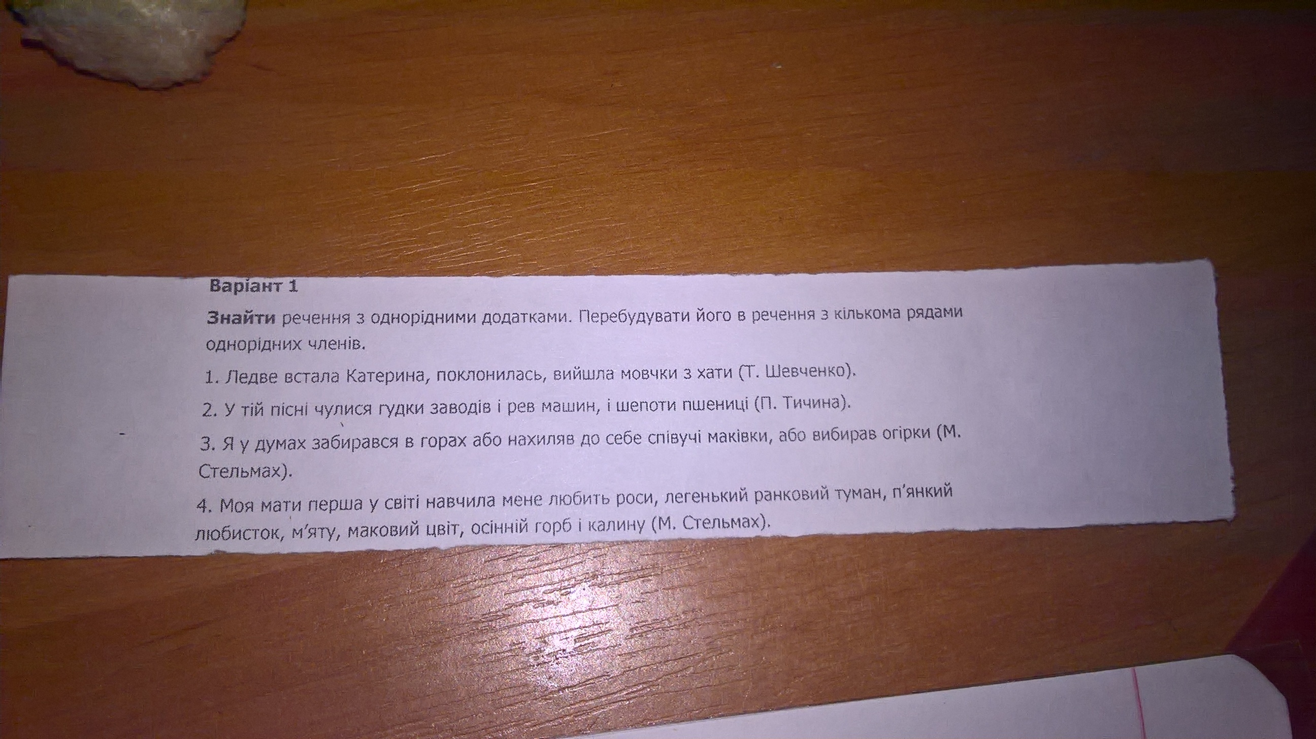 Знайти речення з однорідними додатками. Перебудувати його в речення з кількома рядами однорідних членів.