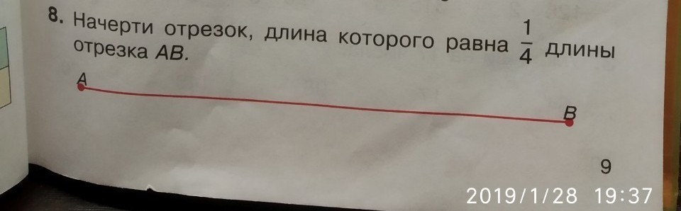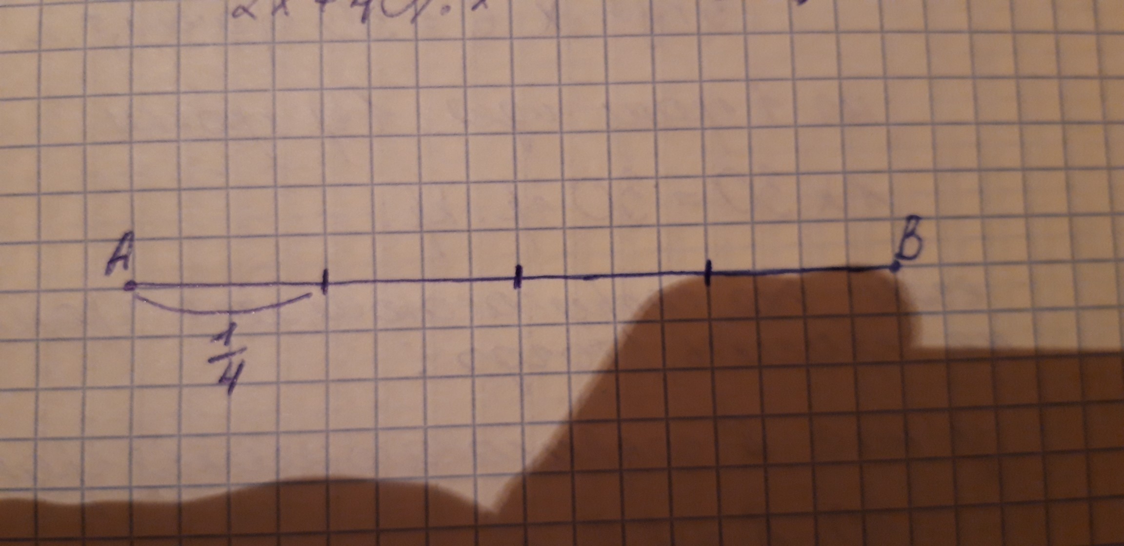 раздели отрезок АВ на 4 равные части, вот тебе и будет длина отрезка