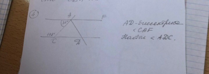 ∠DАF = ∠САF/2 = 148/2 = 74° (так как АD - биссектриса)
