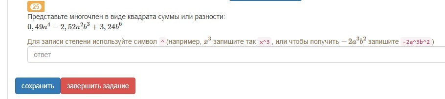 Ответ : (0,7a^2 - 1,8b^3)^2