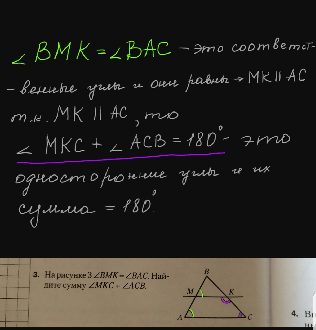 При пересечении двух параллельных прямых сумма односторонних углов равна 180°.
