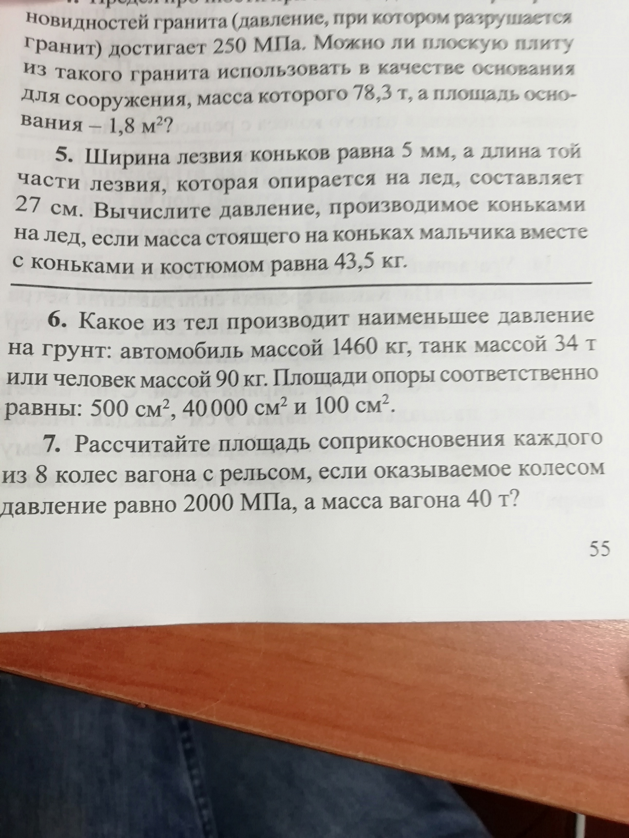6.Просто переводим в СИ и решаем по формуле P=F/S 7.СИ.Узнаем общую площадь колёс и опять по формуле P.