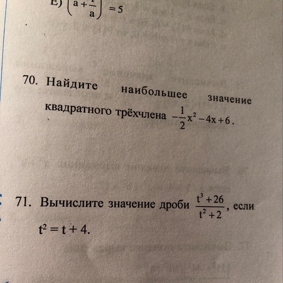 70. Графиком функции y = -0,5x²-4x+6 является парабола, ветви которой направлены вниз (коэф. при x отрицательный). Значит, наибольшее значение в точке, которая является вершиной параболы. Найдём её координаты: