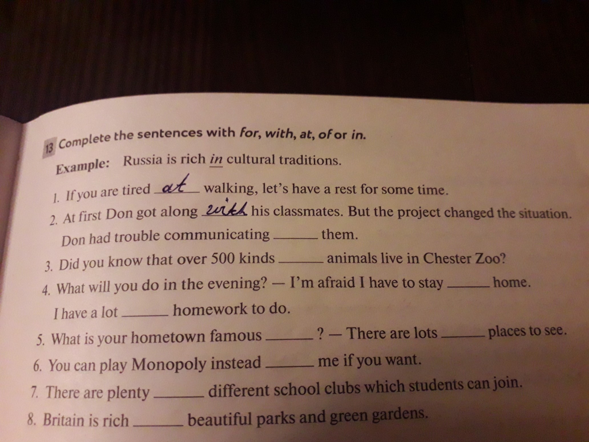 3. of 4. at , of 5.( точно не знаю) for, of 6. with 7. of 8. for