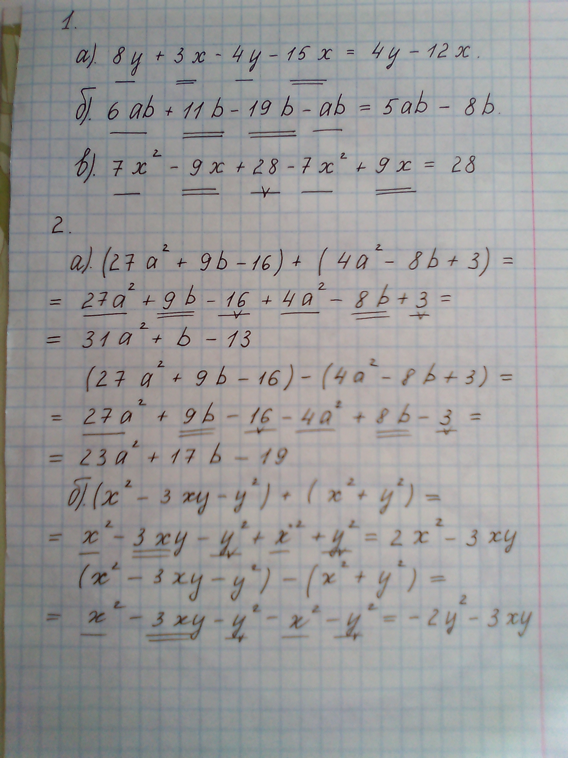 2. Составьте сумму и разность многочленов и приведите к стандартному виду :