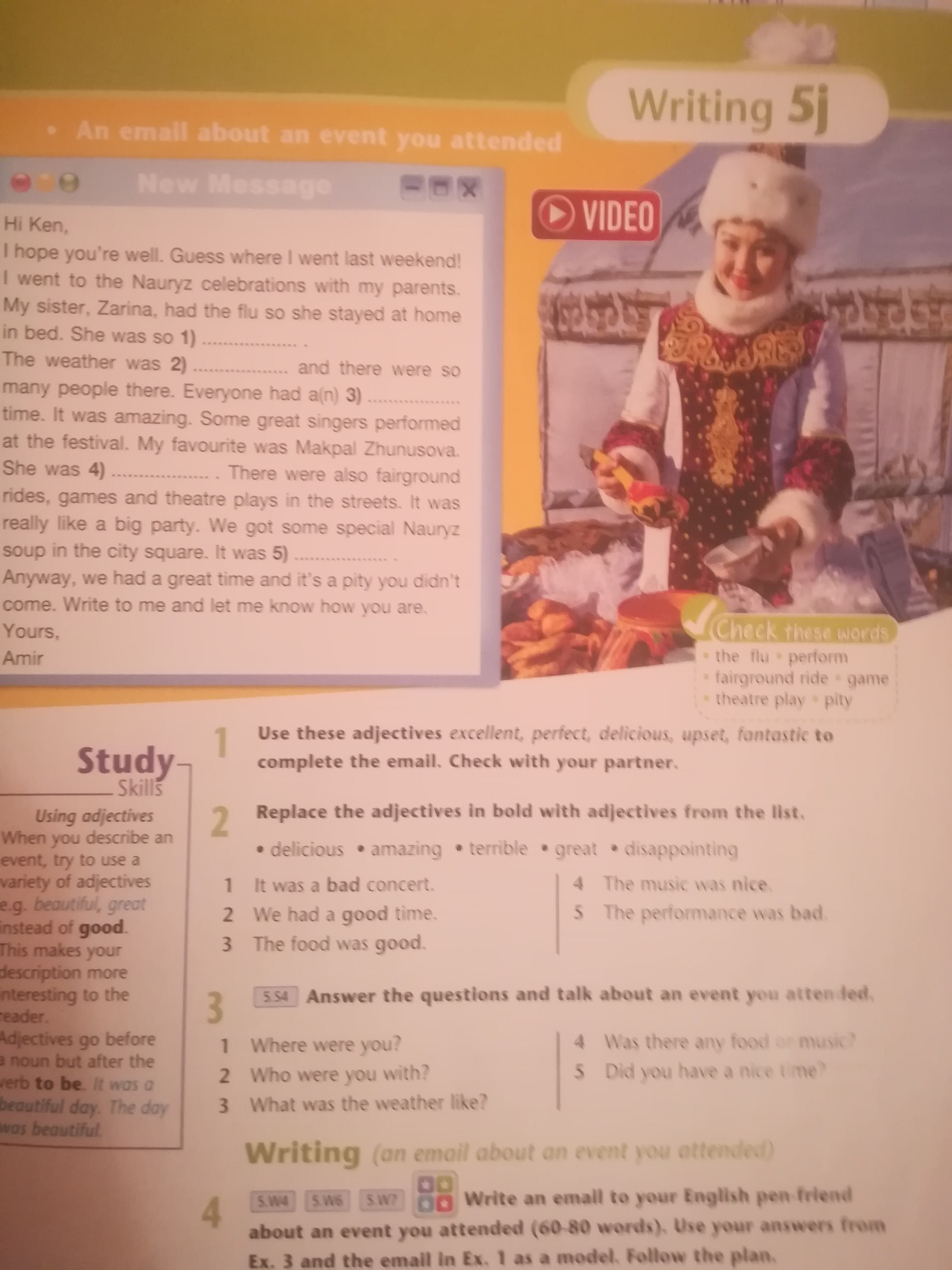 1) upset 2) perfect 3) an excellent 4) fantastic 5) delicious