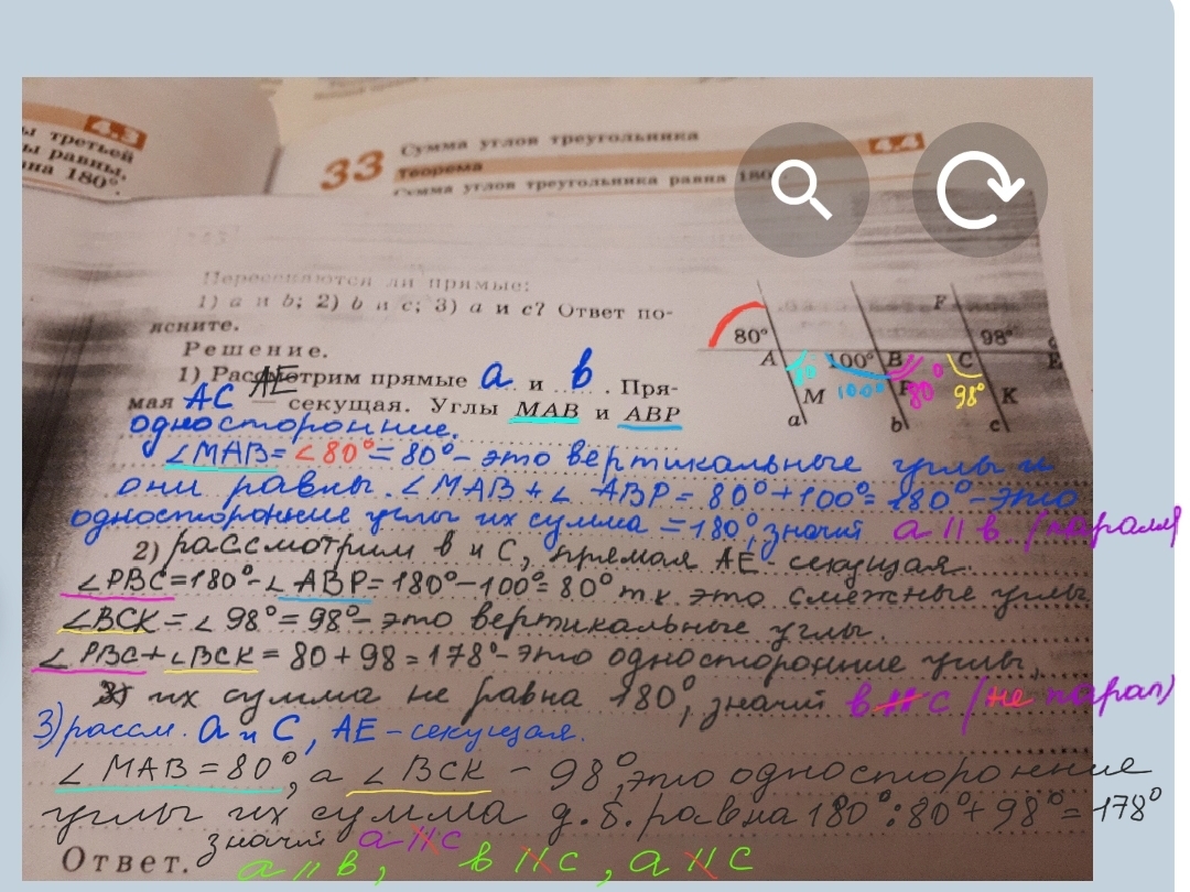 При пересечении двух параллельных прямых сумма односторонних углов равна 180°.
