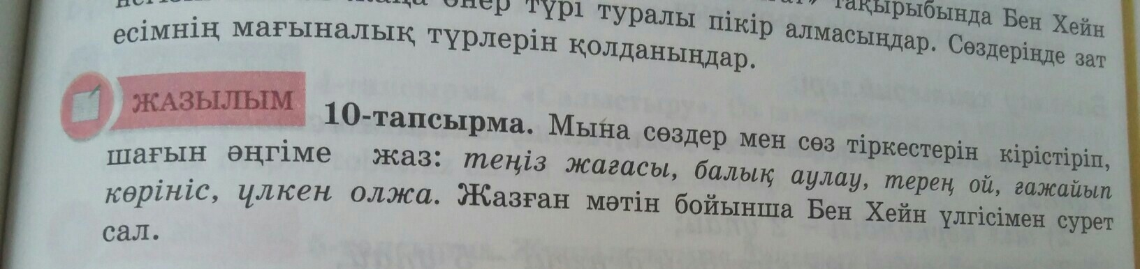 теңіз жағасы балық аулауға өте қолайлы жер.балықшы терең ойға батып отырып,ғажайып корініске куа болд.ол арине үлкен олжаға кенелу болатын