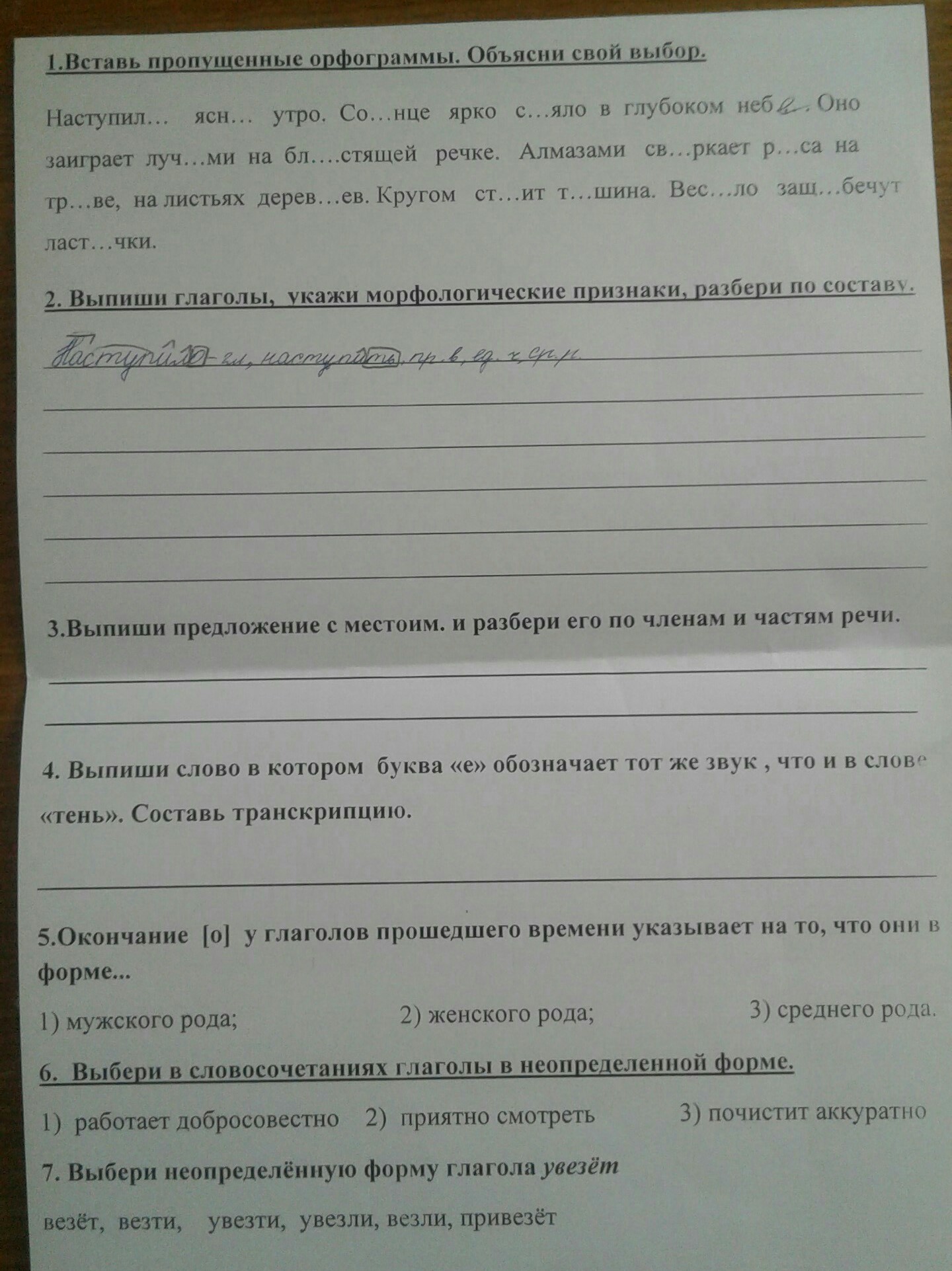 2. Наступило, сияло, заиграет, сверкает, стоит, защебечут.