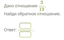 Если дано отношение 3/13, то обратное отношение будет равно 13/3 соответственно.