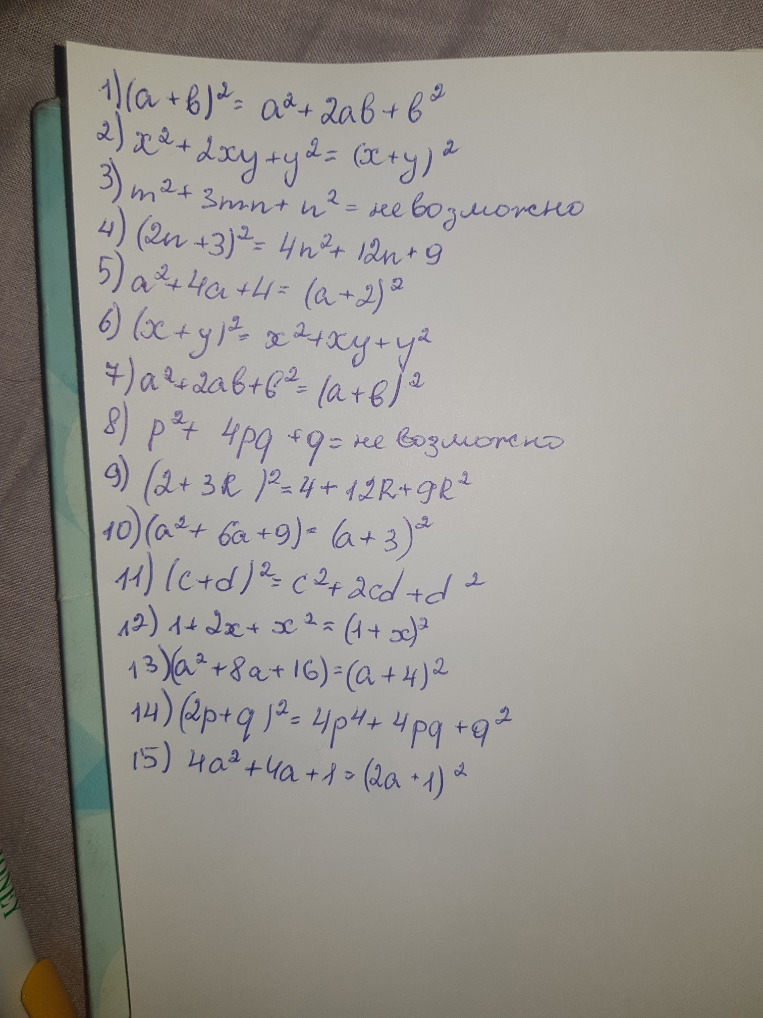 6) (x+y)^2=x^2+2xy+y^2