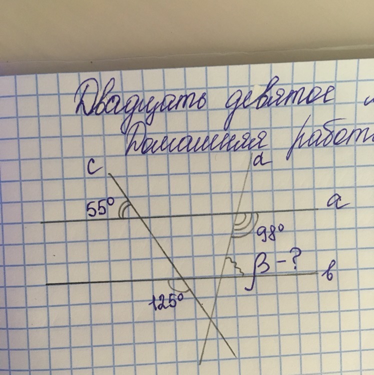вот у тебя есть ∠125 и если ты найдёшь второй,то есть соответственный ∠55°,то он будет равен 55° ну типо 180-125, а если эти углы равны(как соответственные), то прямым а и б параллельные.