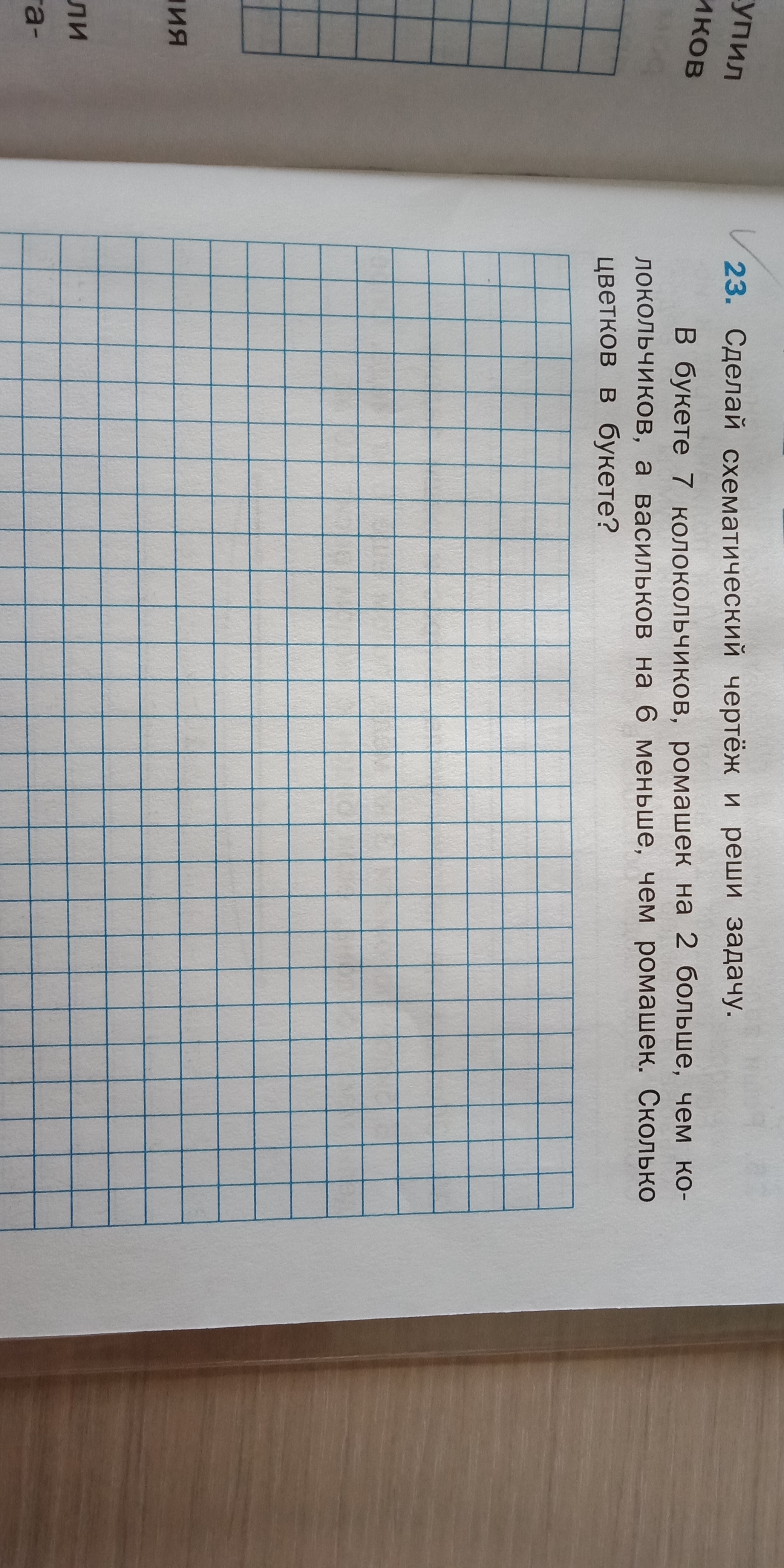 Если в букете 7 колокольчиков , то ромашек 7+2=9(по условию)