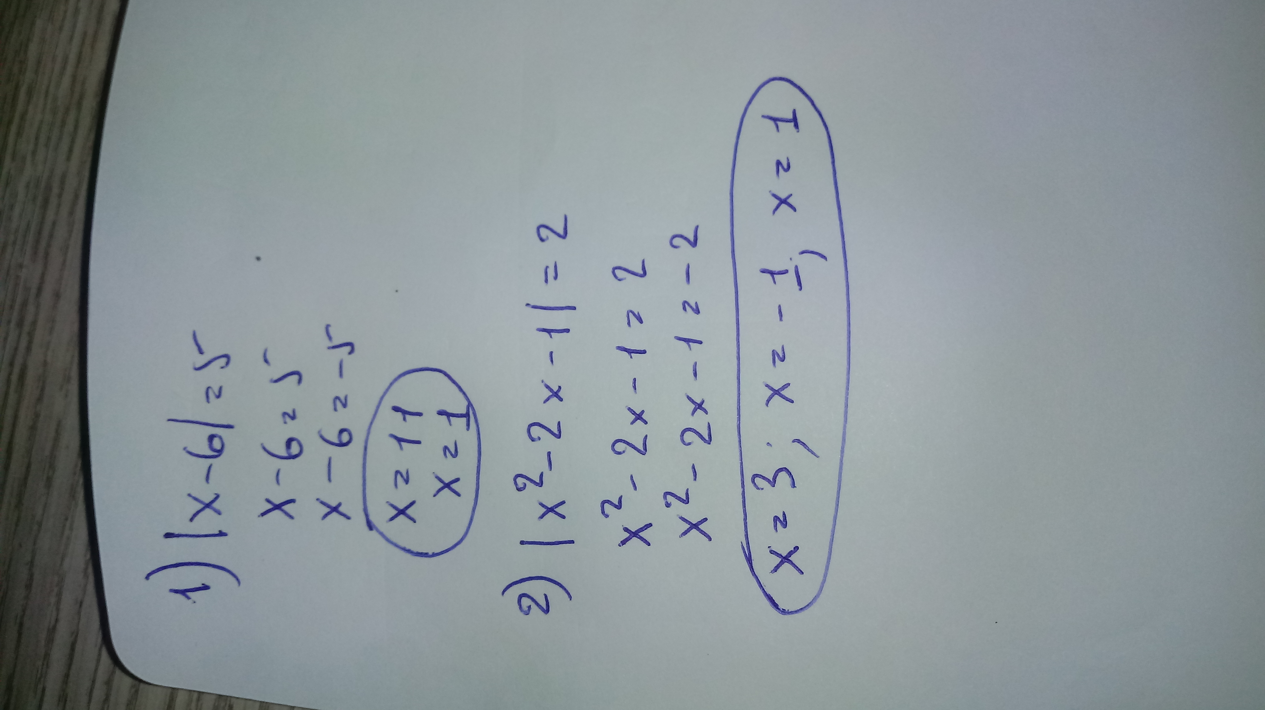 2) x^2-2x-1=-2 => x^2-2x-1+2=0 => x^2-2x+1=0 => D=(-2)^2 - 4*1*1 = 0 => x= (-(-2)+-0)/2=1 => x=1